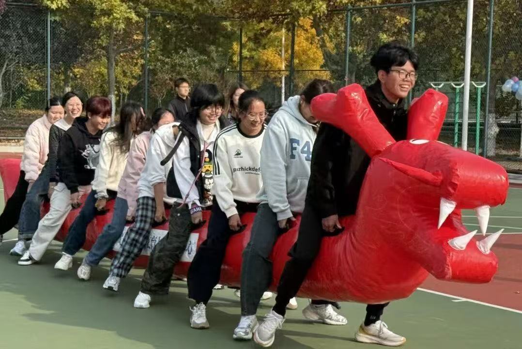 活动当天,暖阳高照。学院各班级坚持“团结协作、释放压力”,依次进行“一圈到底”“多人多足”“双龙戏珠”和“旱地龙舟”四项趣味竞赛。同学们秉持着“拧成一股绳,共赴一场乐”的信念,全情投入、默契配合,现场欢声笑语。最后,各班通过“情绪垃圾桶”活动帮助同学减压。