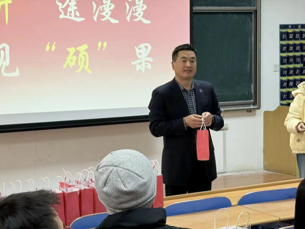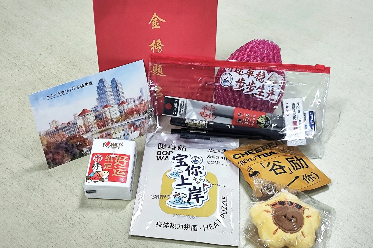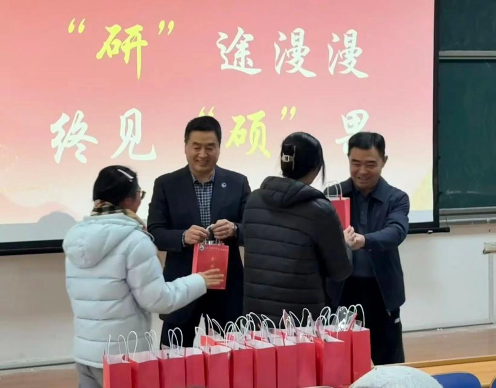 随后,学院领导、教师和学生代表将学院精心准备的“考研上岸加油包”分发到每一位考研学子的手中,礼包内包含实用文具与暖心礼物,每一份都承载着学院对考研学子们的诚挚祝福与期盼,为学子们最后阶段的冲刺注入温暖与力量。