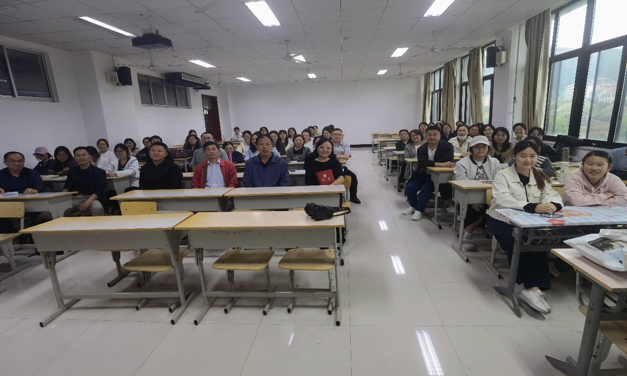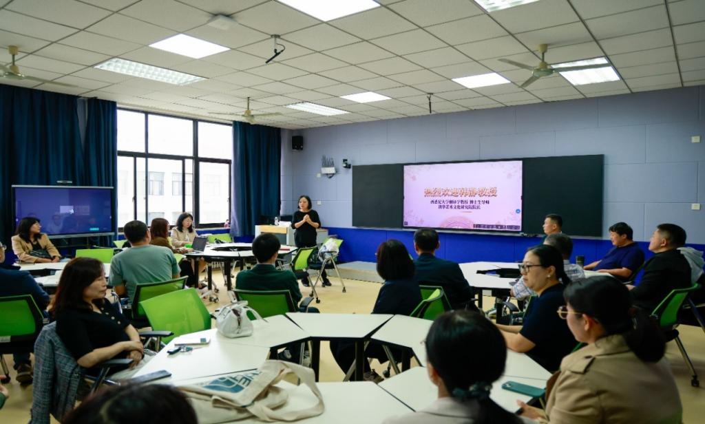 活动伊始,在逸夫楼2511举办了一场高水平的学术座谈。韩静教授与我院系主任、骨干教师及博士代表围绕“新时代翻译人才培养的挑战与机遇”进行了深度对话。她结合丰富的业界管理经验与国际化学术视野,就课程体系优化、产学研融合路径等议题提出了诸多战略性建议。与会教师表示,此次座谈为我院翻译专业的转型升级提供了清晰的思路。