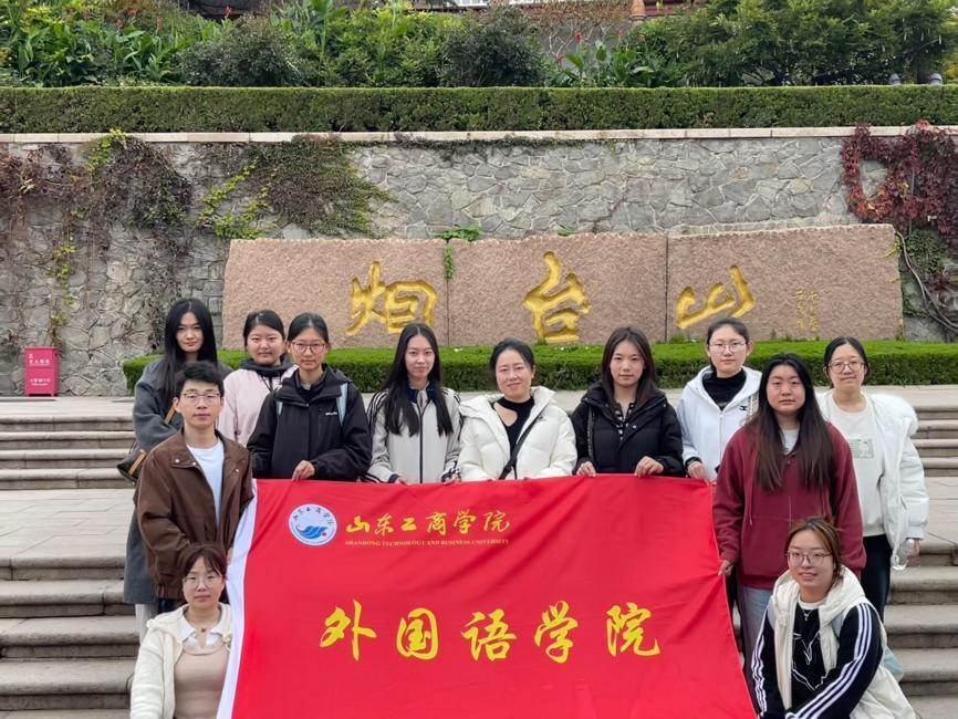 活动从烟台山脚下的集体合影开始。同学们在烟台山标志性建筑处前整齐列队,用镜头记录下这次难忘的学习之旅,展现了班级的凝聚力和向心力。