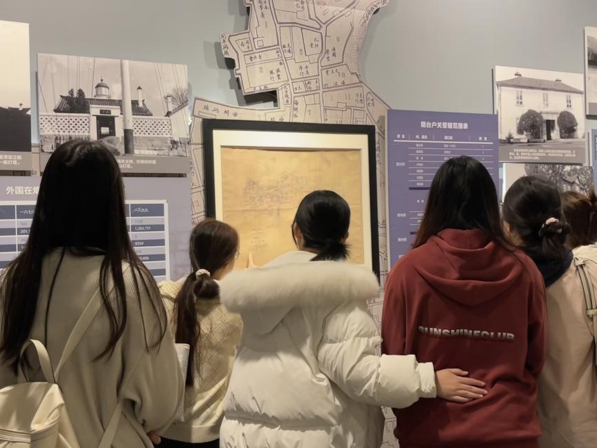 在烟台开埠陈列馆,同学们认真观看展出的历史文物和文献资料。这些珍贵的实物和图片,让课本上的历史变得真实可感。大家驻足交流,对民族复兴的历史意义有了更深的体会。