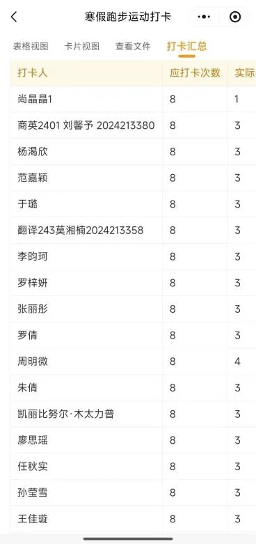 在跑步实践中,同学们将运动融入日常生活:有的坚持每日打卡,从热身起步到调整呼吸,在日复一日的积累中收获自律与体能的双重提升;有的将跑步视为情绪调节的出口,在迈步与呼吸间与自己对话,释放压力、回归平静。通过运动打卡记录,一张张截图、一次次里程累积,见证着同学们从“任务驱动”到“习惯养成”的转变。奔跑不再是需要外力推动的负担,而逐渐成为内化于心的生活日常。从关注配速到沉浸过程,大家在奔跑中收获的不仅是健康的体魄,更是自我认同与精神力量的淬炼。